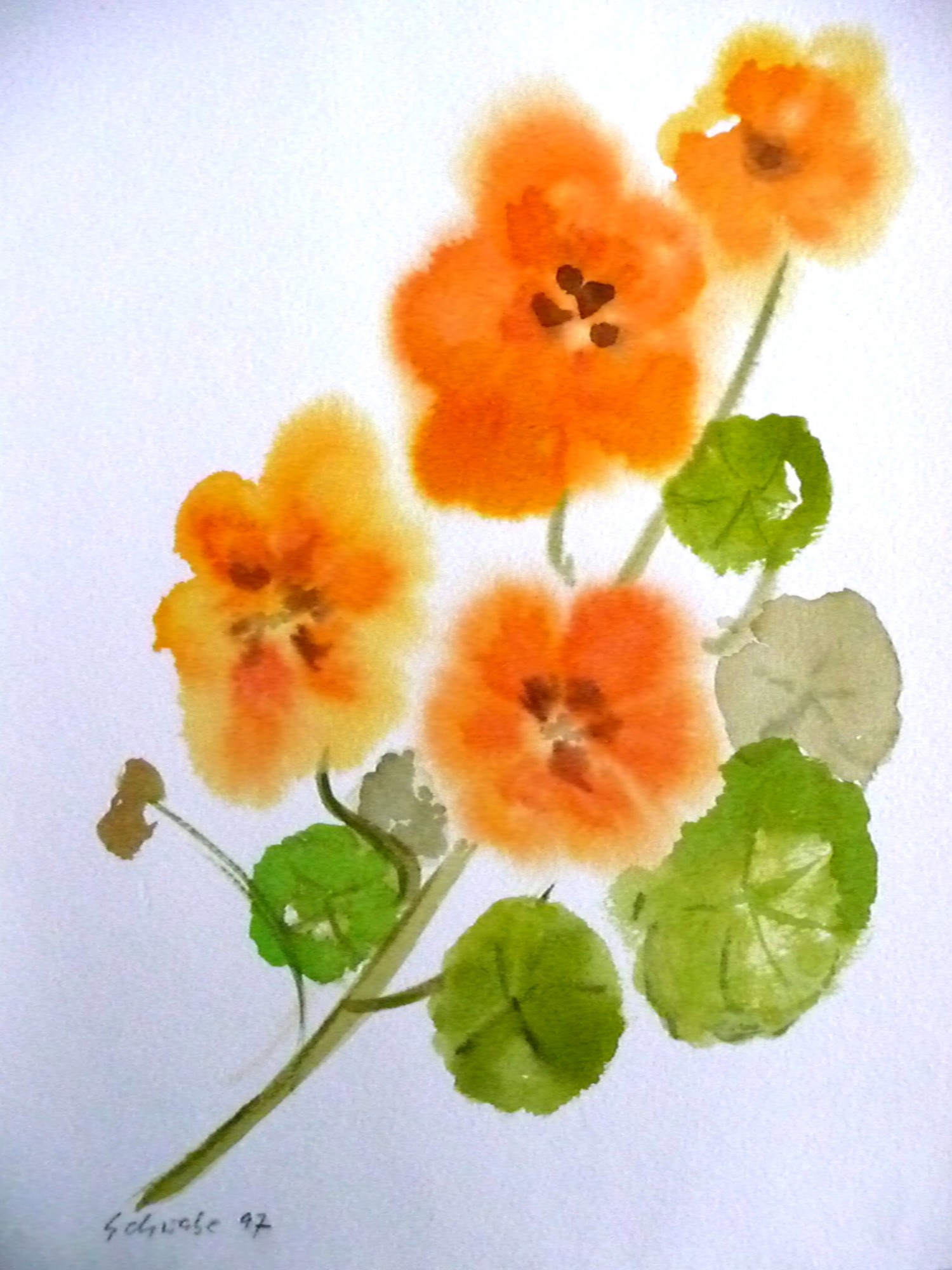Blumen Für eine vergrößerte Ansicht der Bilder klicken Sie auf das jeweilige Bild Flieder (1951) Tränende Herzen (1952) Uferpflanzen (1973) Gladiolen (1975) Sonnenblumen (Gouache) (1982) Königskerze ((1982) Stiefmütterchen (1983) Blumen I (1997) Blumen II Zinnien (2009)